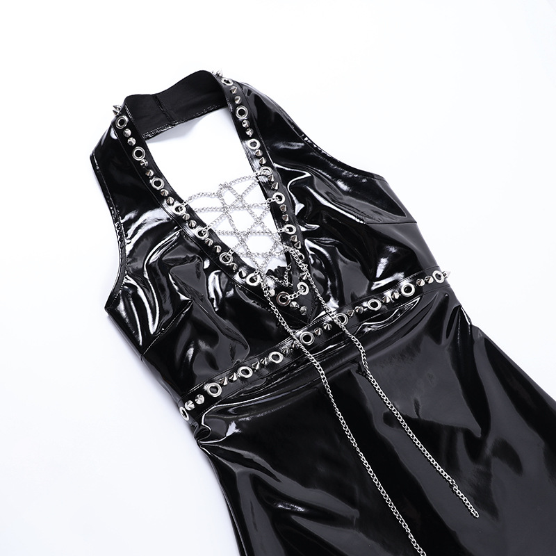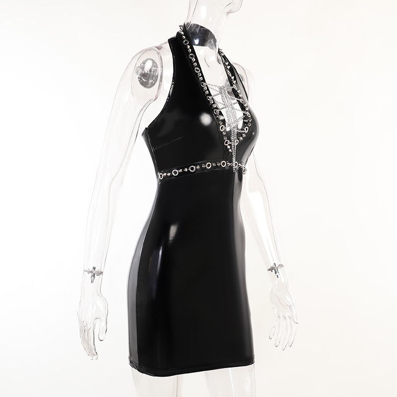 Dark Tie Chain Halter Dress